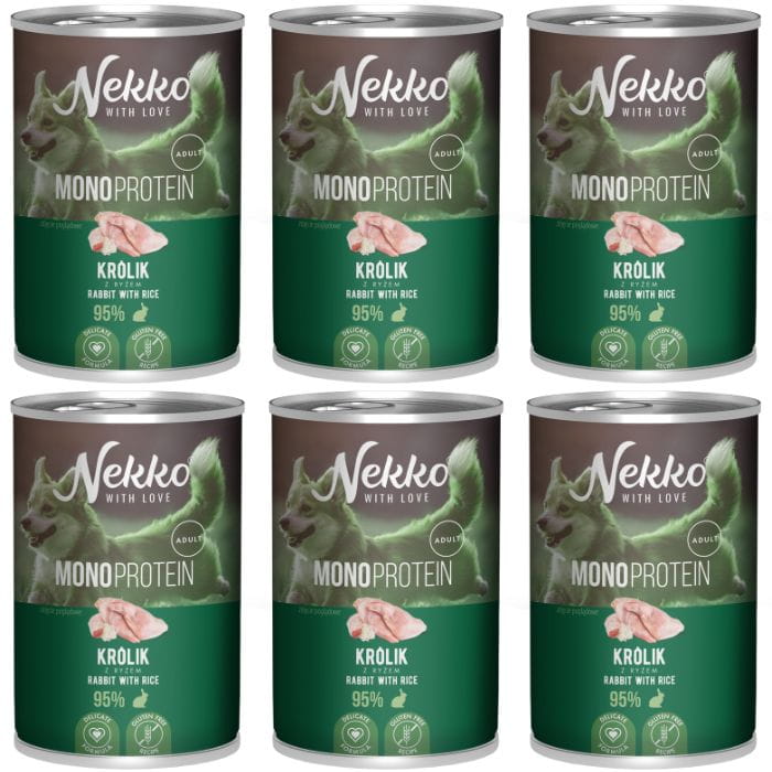 Nekko Monoprotein Adult Karma mokra dla psa Królik z ryżem 6 x 400g