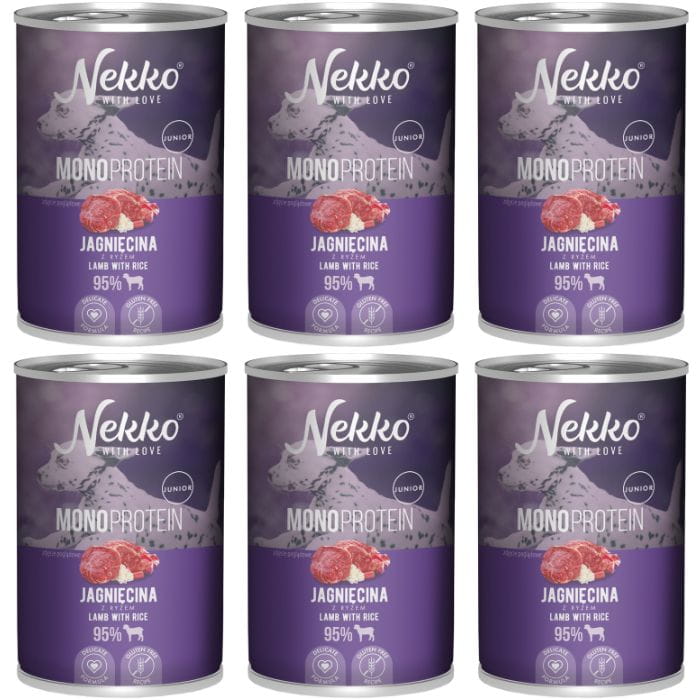 Nekko Monoprotein JUNIOR Karma mokra dla psa Jagnięcina z ryżem 6 x 400g