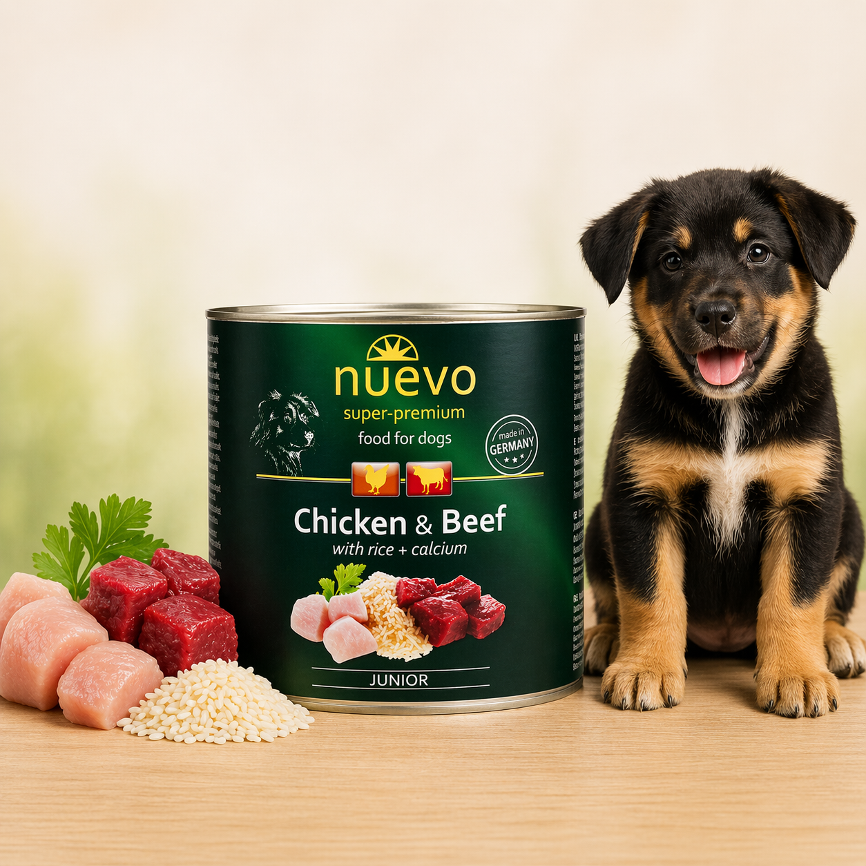 Nuevo Junior Dog Chicken Beef mokra karma dla szczeniąt kurczak wołowina 800g