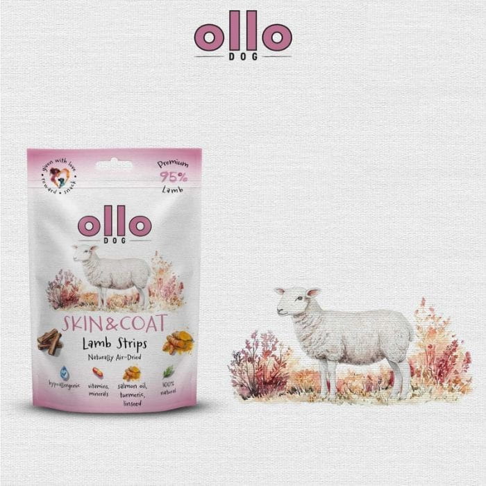 Przysmak dla psa Ollo Air Dried Skin & Coat Lamb Strips 80g