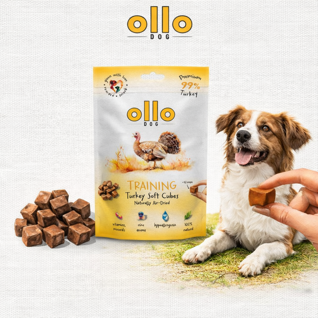 Przysmaki treningowe dla psa Ollo Air-Dried Turkey Soft Cubes 80g