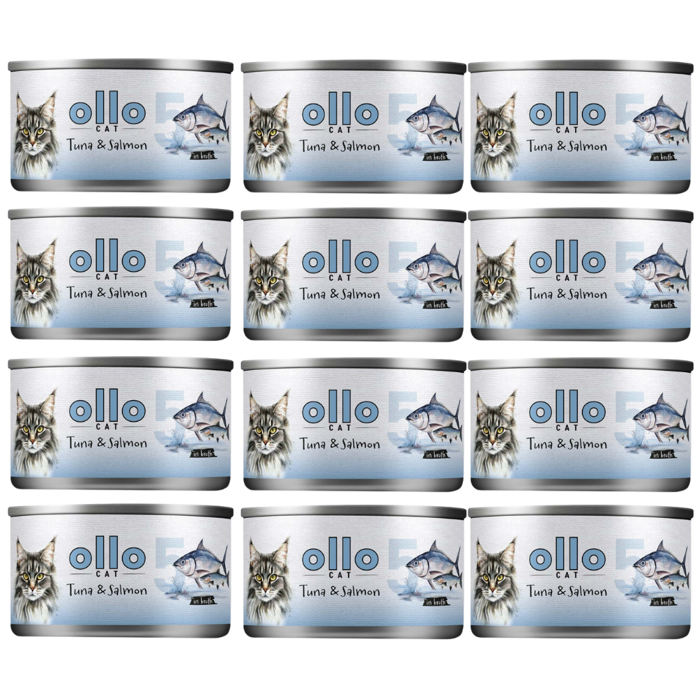 ZESTAW 12x Karma mokra dla kota Ollo nr 5 Tuńczyk i Łosoś (70g)