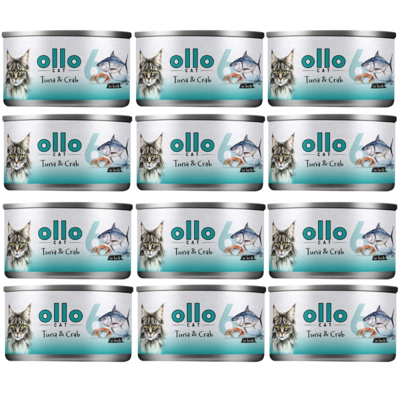Zestaw zawiera 12 sztuk Karmy mokrej dla kota Ollo nr 6 Tuńczyk i Kraba (70g)