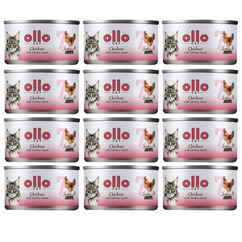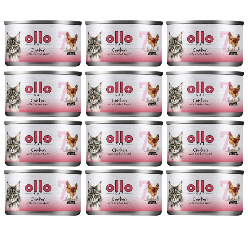 Zestaw zawiera 12 sztuk Karmy mokrej dla kota Ollo nr 7 Kurczak i Serca z Kurczaka (70g)