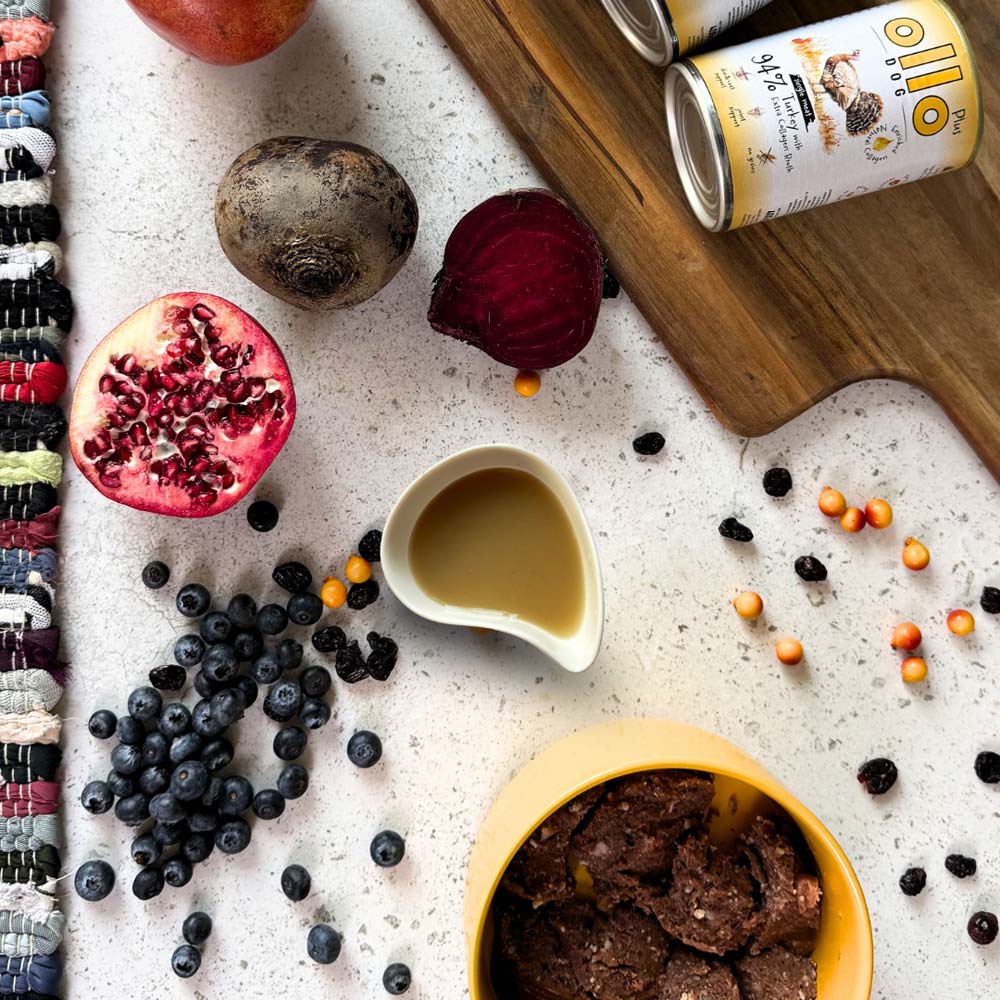 Kolagen jest jednym z najważniejszych budulców chrząstek, stawów oraz więzadeł. W karmie Ollo Dog Plus pomaga utrzymać prawidłową mobilność psa oraz wspiera naturalne procesy regeneracyjne organizmu.