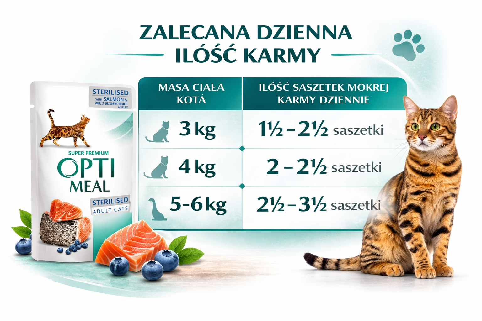 Kot o masie ciała 5-6 kg -_ 2,5 – 3,5 saszetki dziennie