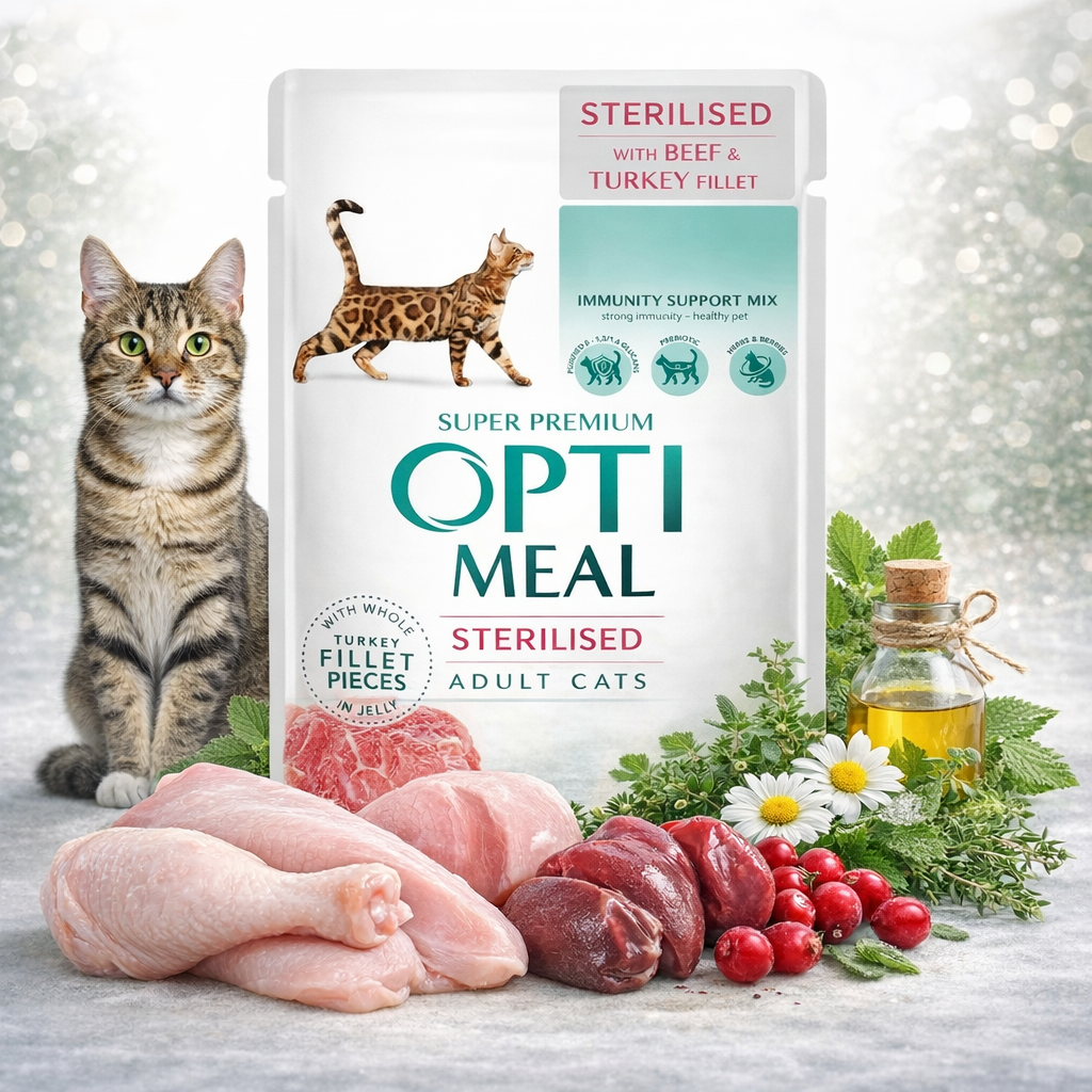 Opti Meal Sterilised - Wołowina/Indyk 85g