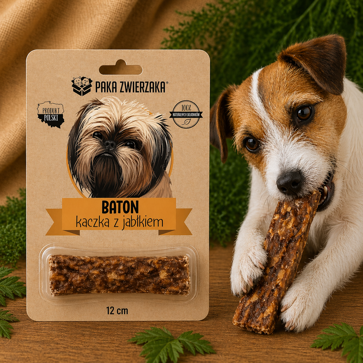 Paka Zwierzaka baton kaczka z jabłkiem to ręcznie wykonany, naturalny gryzak dla psa, który daje nie tylko smakowitą przyjemność, ale też wartościowe zajęcie na dłużej. To świetna propozycja dla opiekunów, którzy chcą podać swojemu pupilowi coś prostego, naturalnego i naprawdę porządnego. Aromatyczna kaczka i delikatny dodatek jabłka sprawiają, że baton jest wyjątkowo atrakcyjny smakowo, a jego twardsza forma wspiera codzienną potrzebę gryzienia i żucia.