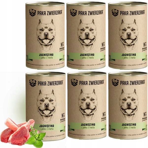 Paka Zwierzaka Karma mokra dla psa Jagnięcina i jabłko z miętą 6 x 400g
