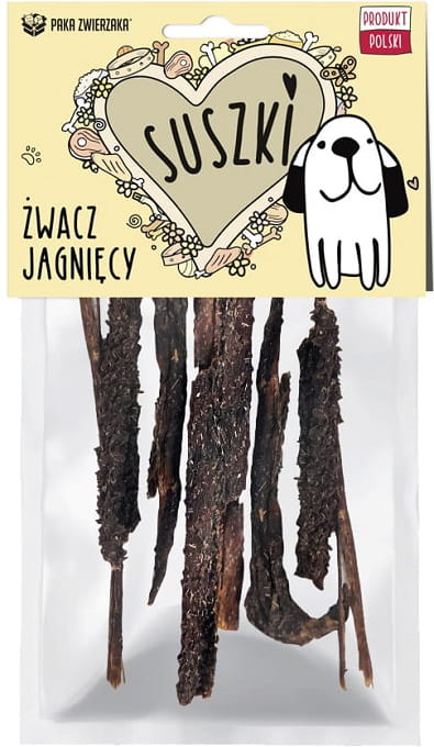 Paka Zwierzaka Suszki żwacz jagnięcy to 100% naturalny przysmak dla psów w każdym wieku, także dla szczeniąt. To propozycja dla opiekunów, którzy szukają czegoś naprawdę wartościowego, naturalnego i smakowitego, a jednocześnie chcą zadbać o trawienie i codzienny komfort pupila. Żwacz jagnięcy ma intensywny, naturalny aromat, który psy uwielbiają, a dzięki starannemu suszeniu zachowuje cenne wartości odżywcze i swój wyjątkowy smak.