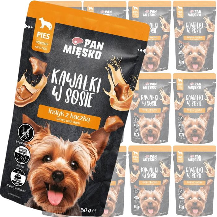 Pan Mięsko Karma mokra dla psa Kawałki w sosie Indyk z kaczką 10 x 150g