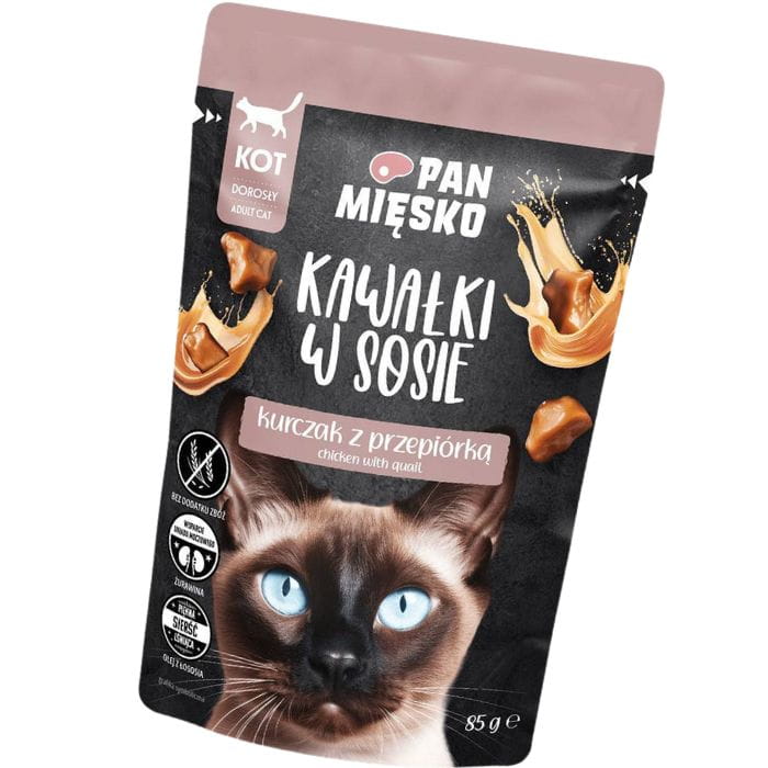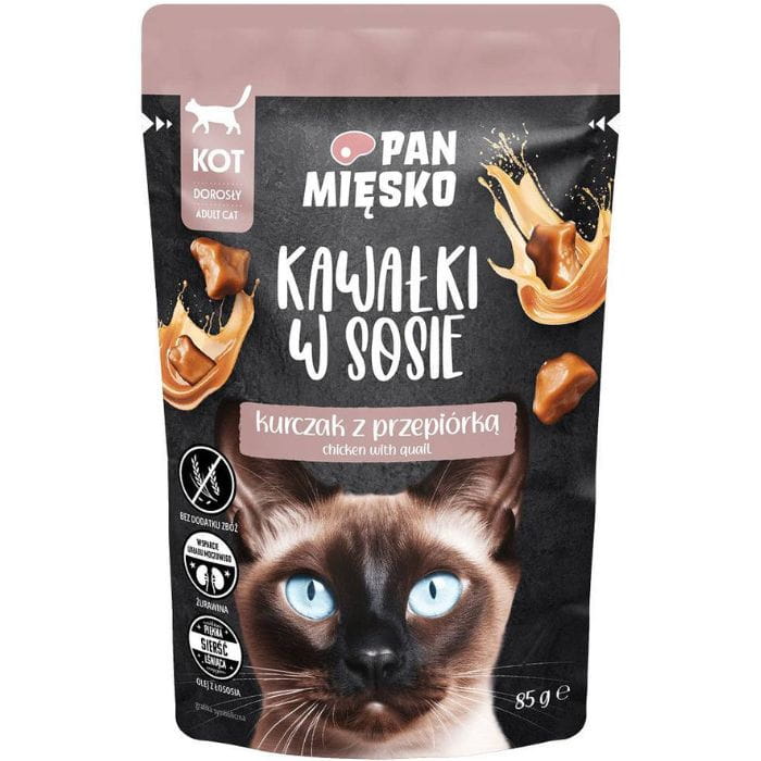 Pan Mięsko Karma mokra dla kota Kawałki w sosie Kurczak z przepiórką 85g