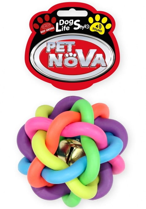 Pet Nova Piłka pleciona z dzwoneczkiem XL 10,5 cm o zapachu wołowiny