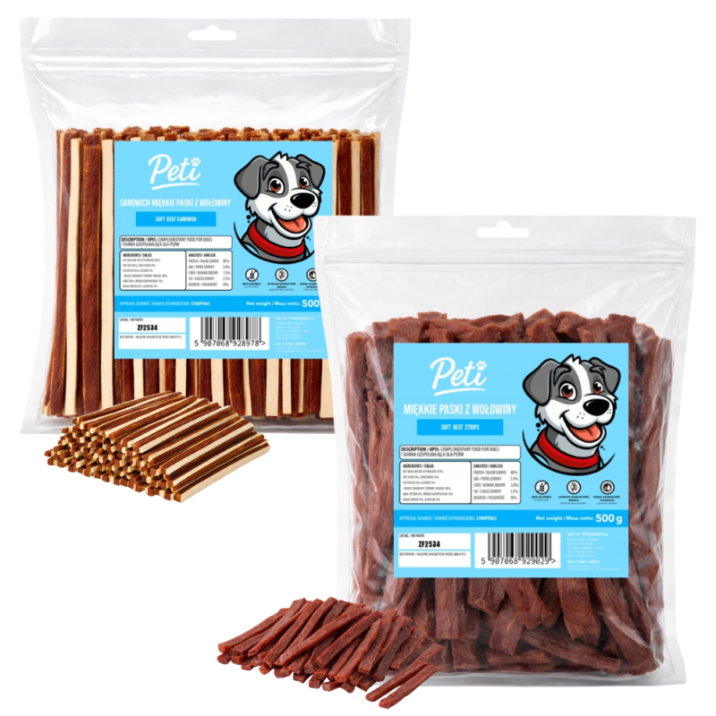 Peti - Miękkie paski z wołowiny 500g+Sandwich paski z wołowiny 500g