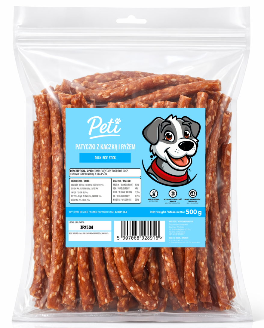 Peti - Patyczki z kaczką i ryżem 500g