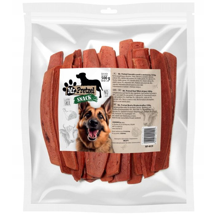 Przysmak dla psa Szerokie paski z wołowiny Filety Mr. Pretzel 500g