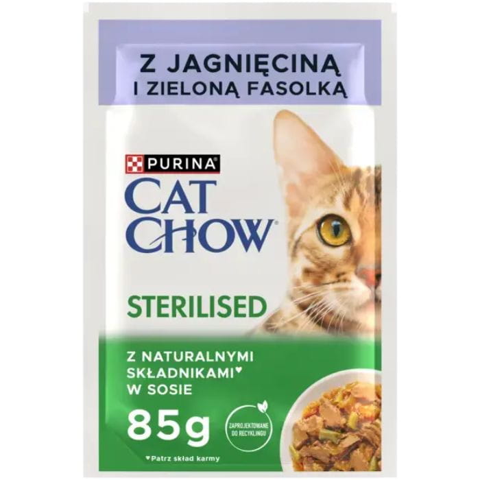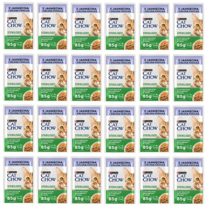 Purina Cat Chow Sterilised z jagnięciną i zieloną fasolką w sosie 24 x 85g