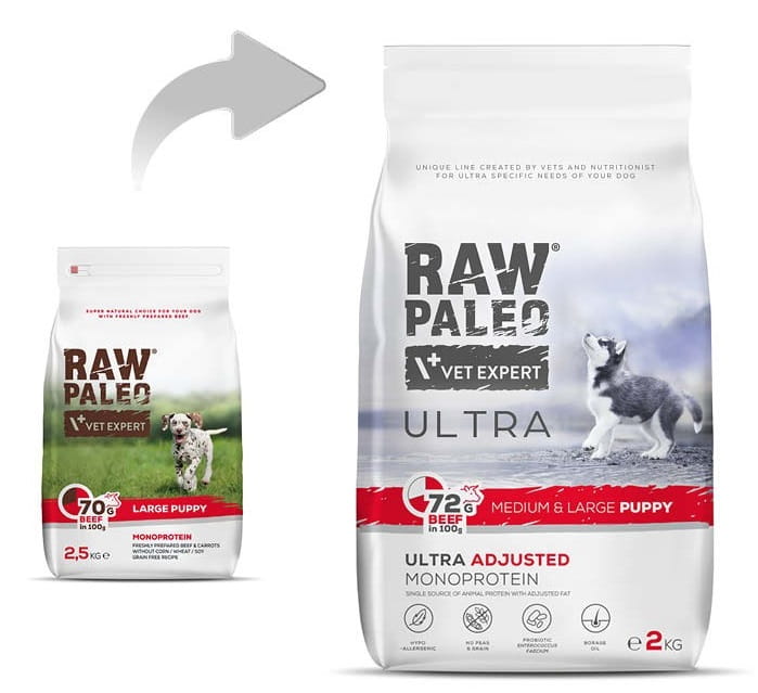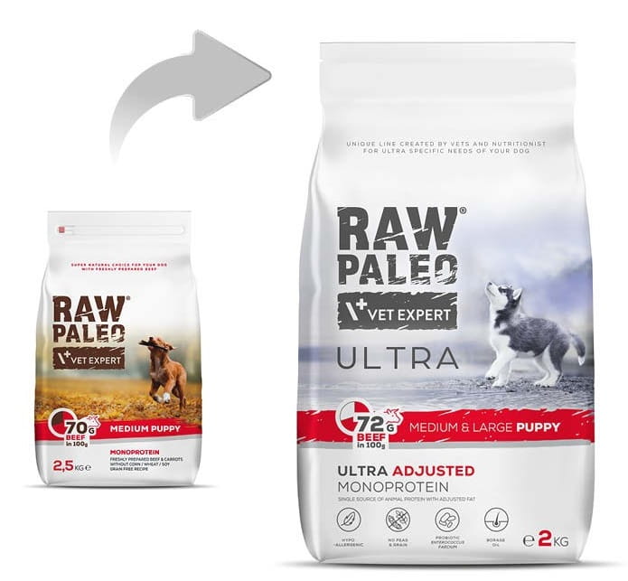 Raw Paleo Ultra Beef Puppy Medium Large 2kg Sucha Karma Dla Szczeniąt