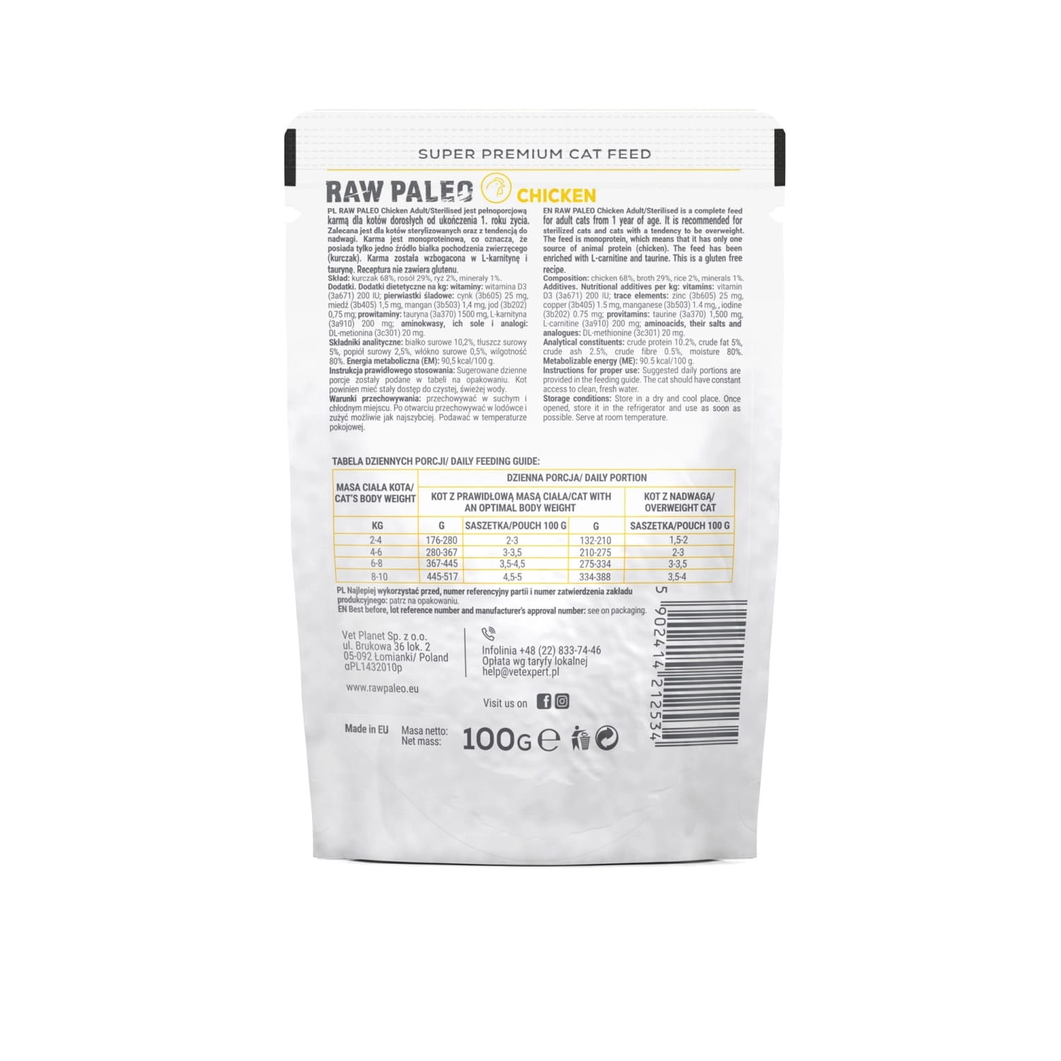 Raw Paleo Adult Sterilised Cat Chicken 100g Monoproteinowa Kurczak