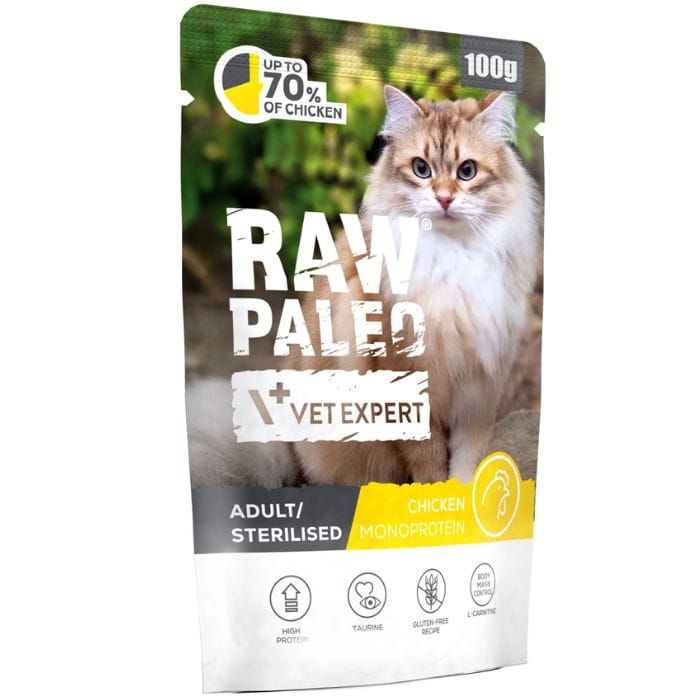 Raw Paleo Adult Sterilised Cat Chicken 12 x 100g Monoproteinowa Kurczak