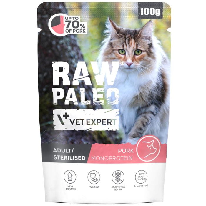 Raw Paleo Adult Sterilised Cat Pork 100g Monoproteinowa Wieprzowina