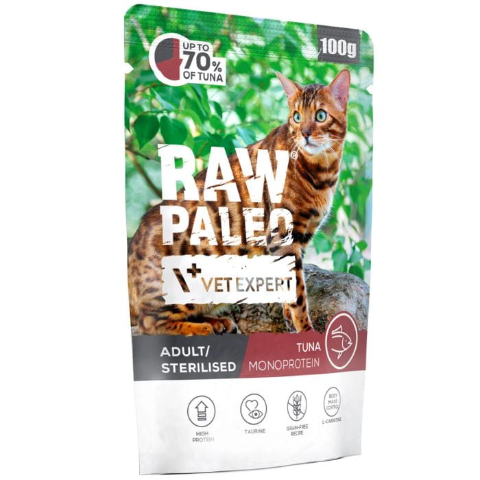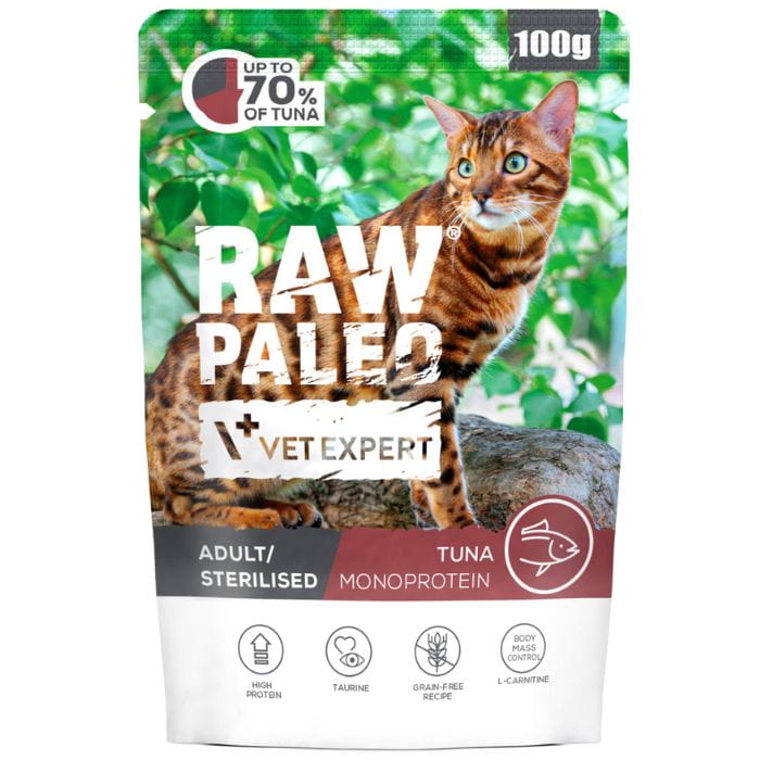 Raw Paleo Adult Sterilised Cat Tuna 12 x 100g Monoproteinowa Tuńczyk