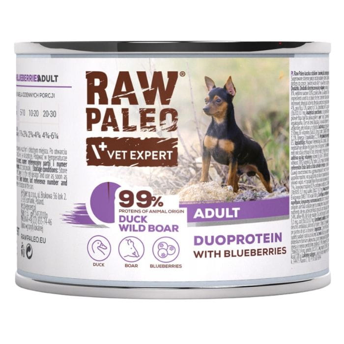 Mokra karma Raw Paleo Kaczka z dzikiem i borówką dla psów dorosłych 200g