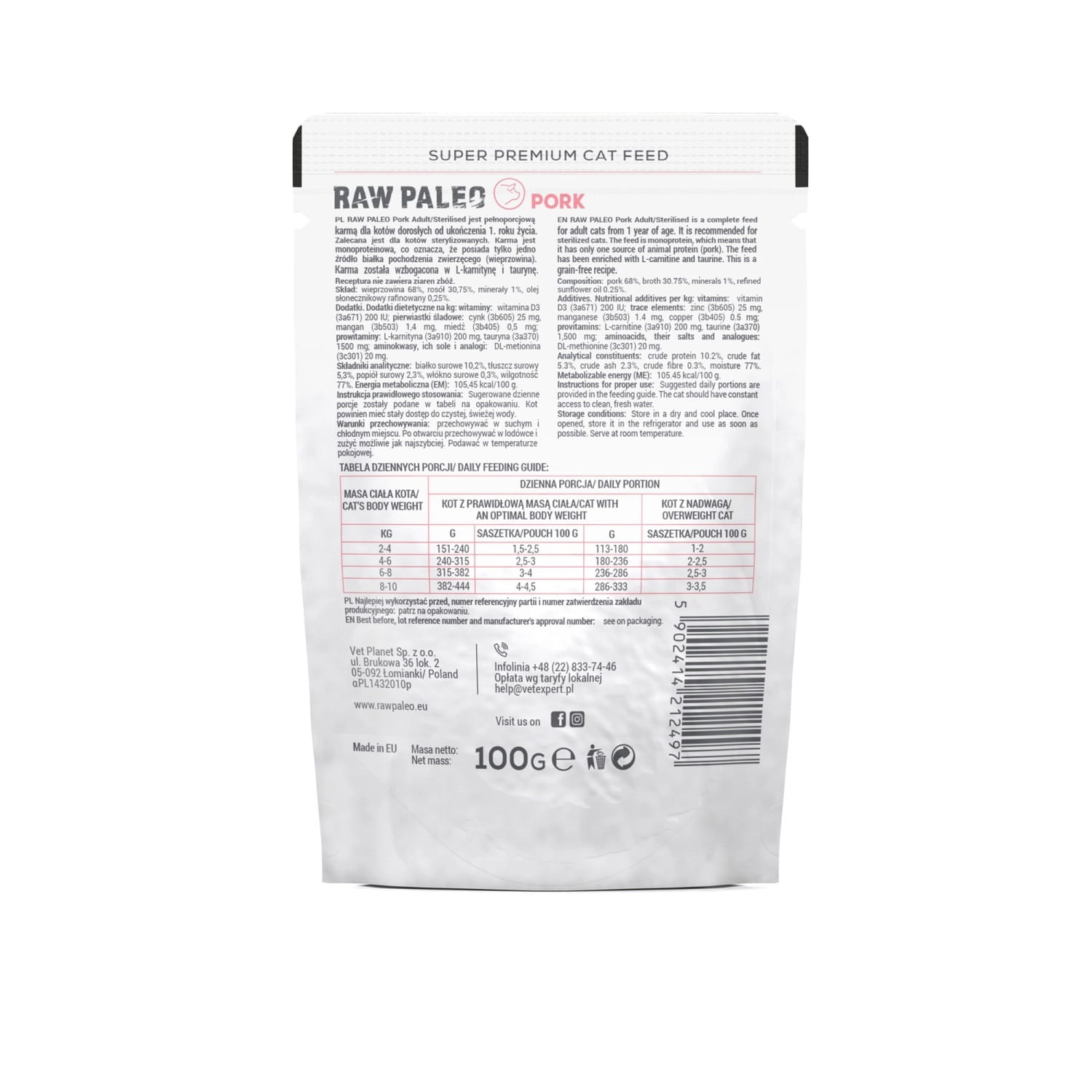 Raw Paleo Kitten Cat Pork 12 x 100g Mokra karma dla kociąt Wieprzowina Mono