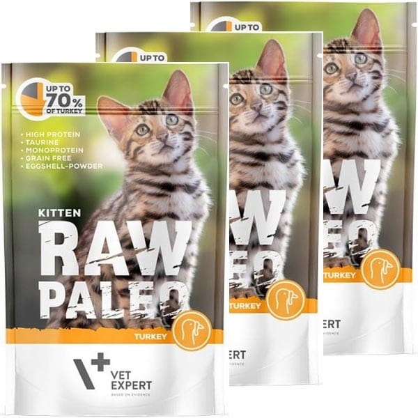 Karma mokra RAW PALEO dla kociąt jest kompletną i zbilansowaną pełnoporcjową karmą bytową przeznaczoną dla kotów rosnących od odsadzenia do ukończenia 1. roku życia.