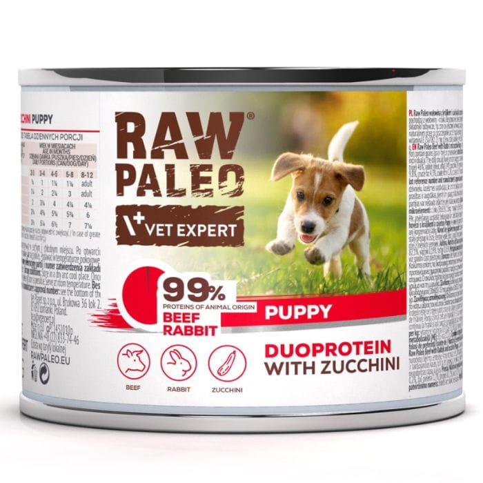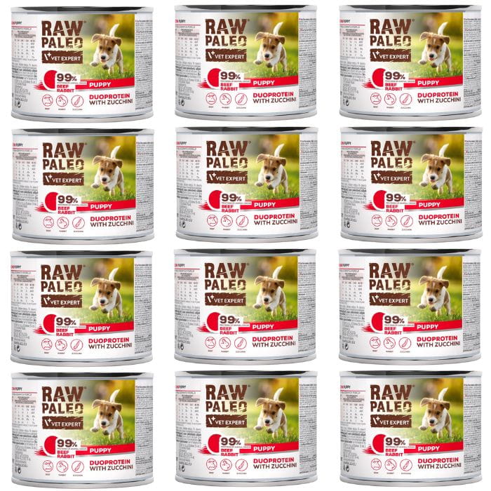 Raw Paleo Puppy Duoprotein 12 x 200g Karma Dla Szczeniąt Wołowina Królik