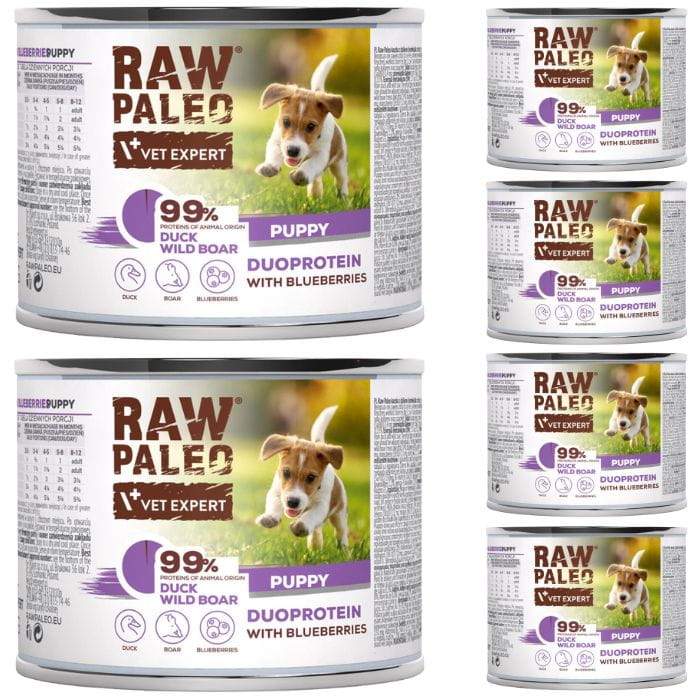 Raw Paleo Puppy Duoprotein 6 x 200g Mokra Karma Dla Szczeniąt Kaczka Dzik