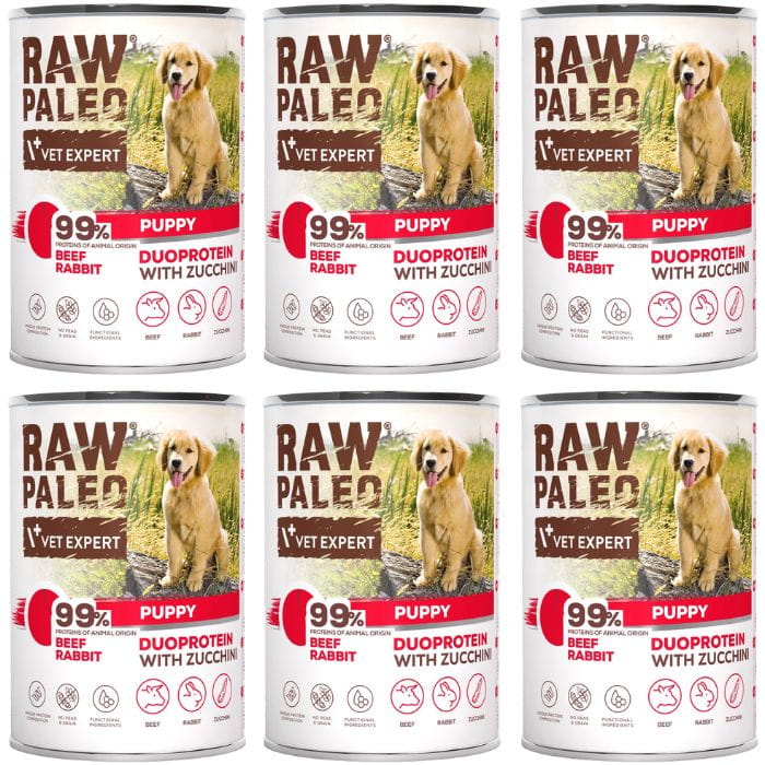 Raw Paleo Puppy Duoprotein 6 x 400g Mokra Karma Dla Szczeniąt Wołowina Królik