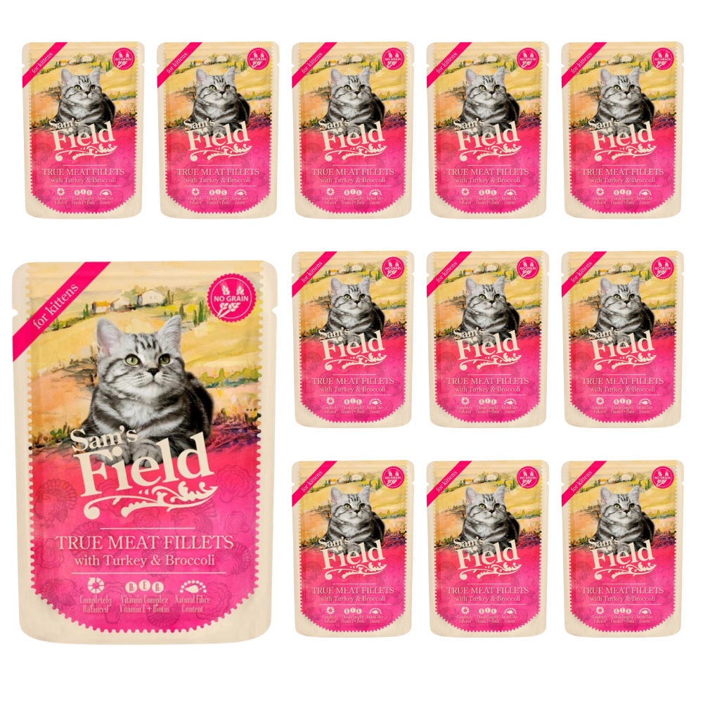 12x Sam's Field True Meat Fillets indyk z brokułem dla kociąt 85g karma mokra