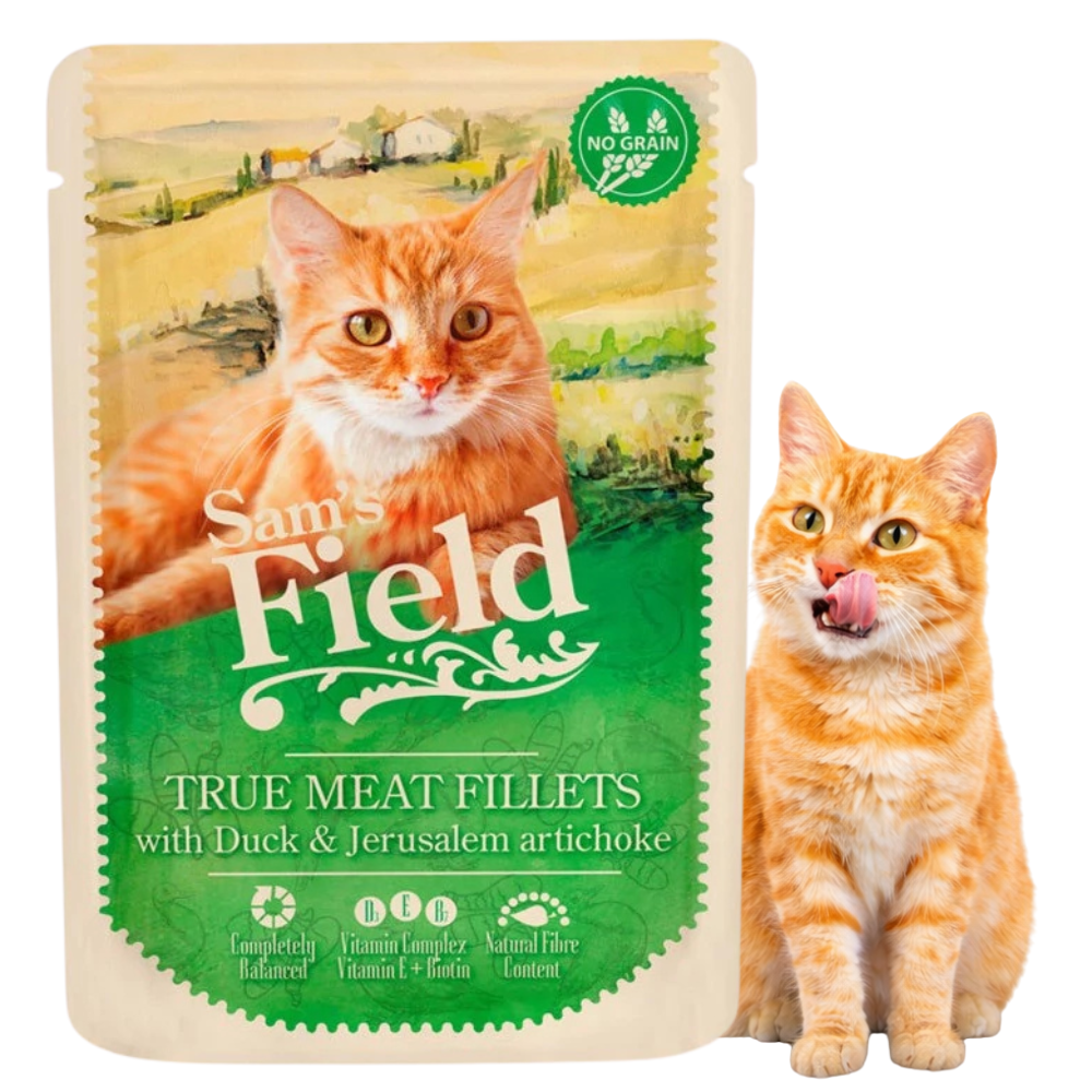 12x Sam's Field True Meat Fillets kaczka ze słonecznikiem bulwiastym 85g karma mokra dla kota