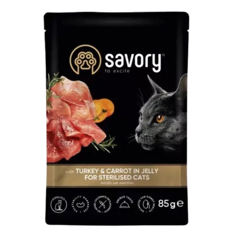 Savory mokra karma dla kota sterylizowanego indyk z marchewką w galarecie 85g