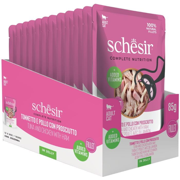 Schesir Karma dla kota Tuńczyk z kurczakiem i szynką w galaretce 12 x 85g