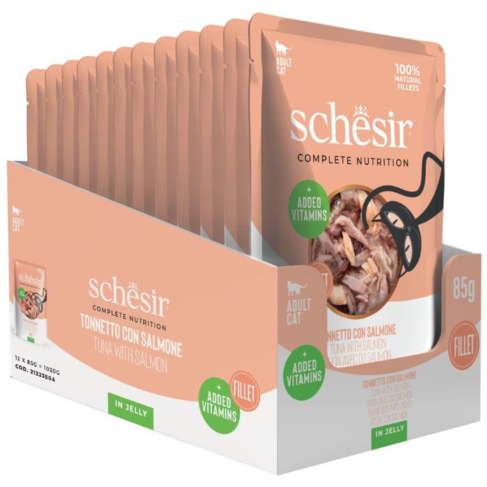 Schesir Karma mokra dla kota Tuńczyk z łososiem w galaretce Saszetka 12 x 85g
