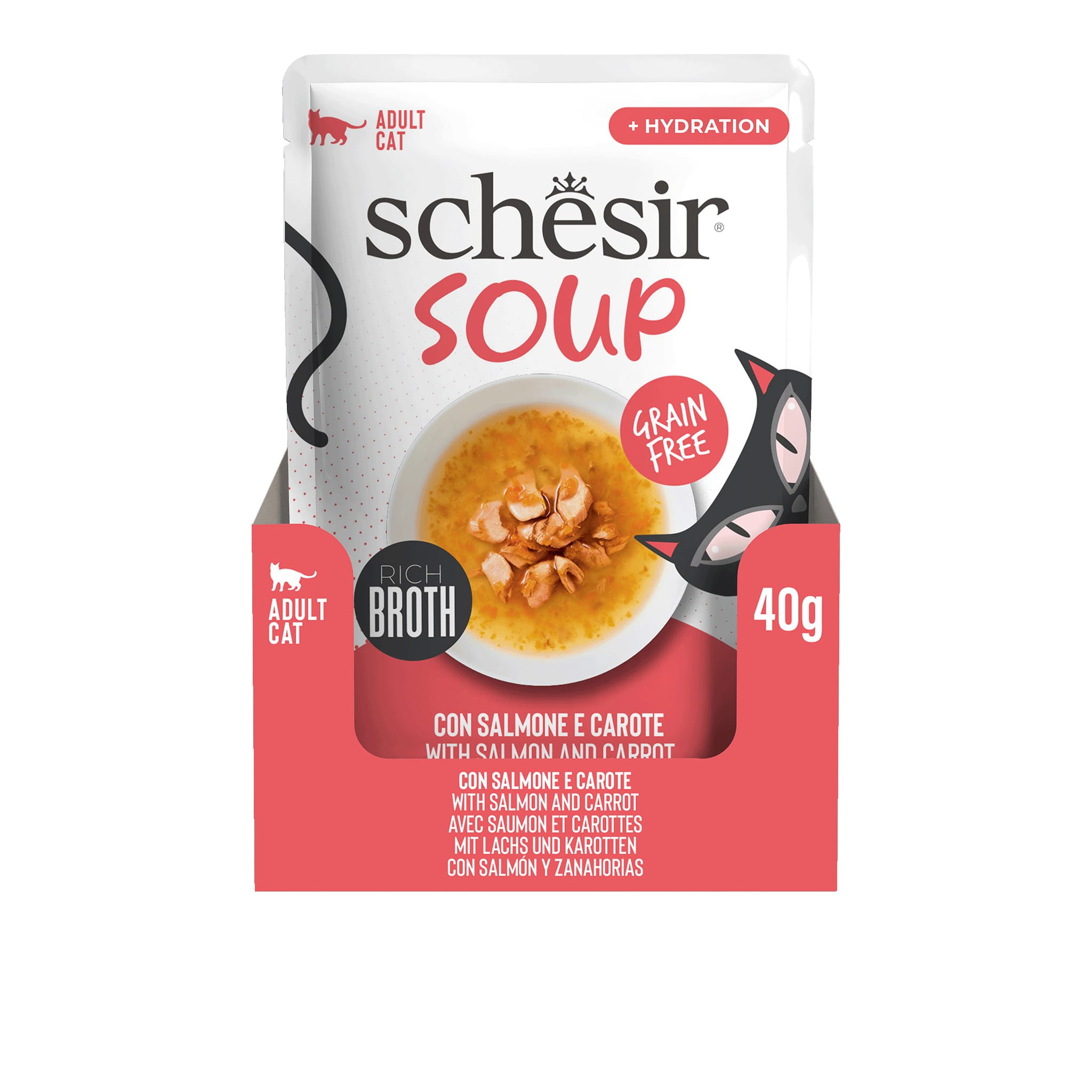 Schesir Soup Zupa Łosoś z marchewką Mokra karma dla kota Saszetki 12 x 40g