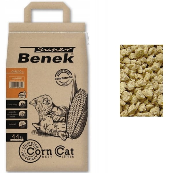 Super Benek Corn Cat Naturalny to żwirek wykonany w 100% z naturalnego, odnawialnego surowca, całkowicie biodegradowalny. Posiada naturalny, delikatny zapach kukurydzy.