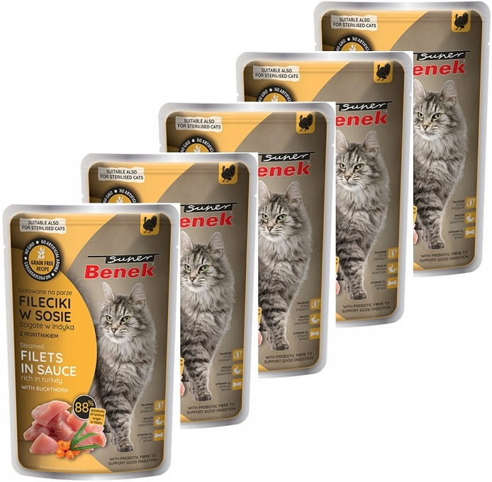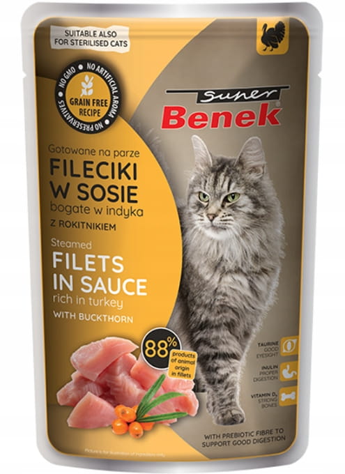 Super Benek Bezzbożowe fileciki Indyk 24 x 85g dla kota
