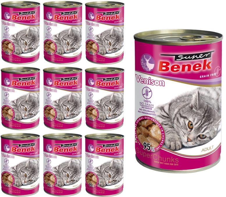 Super Benek Bezzbożowe kąski z dziczyzną dla kota 10 x 415g