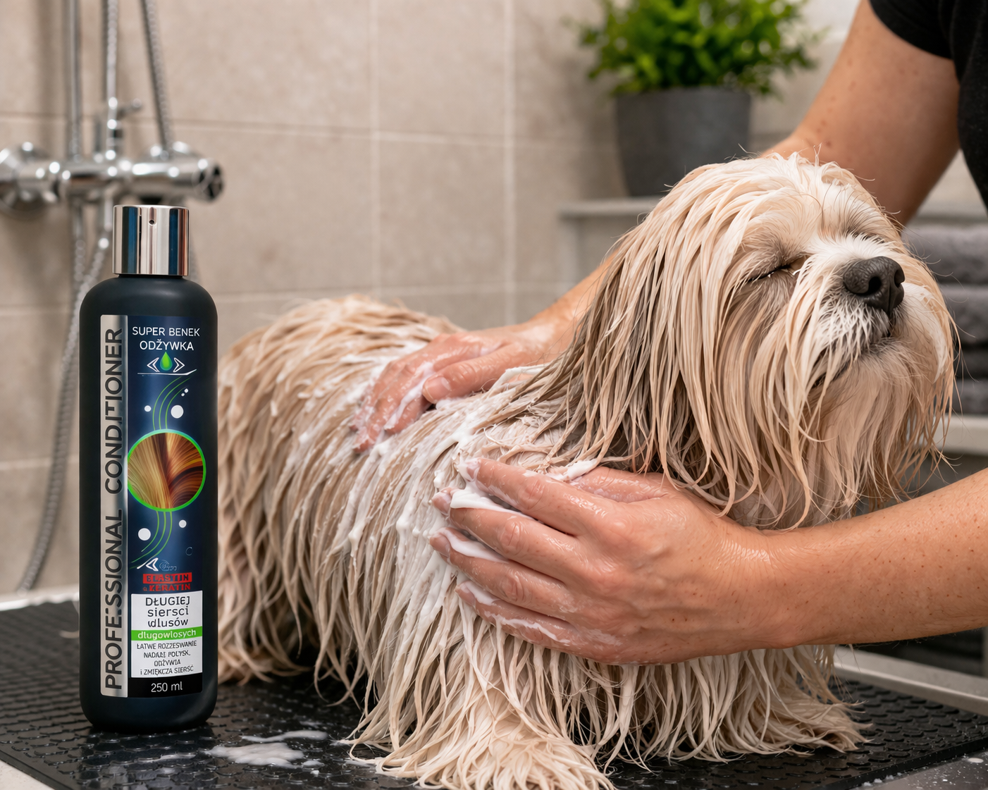 Odżywka sprawdzi się szczególnie u psów ras długowłosych i o jedwabistej okrywie, które wymagają regularnej pielęgnacji, wygładzenia sierści oraz łatwiejszego rozczesywania.