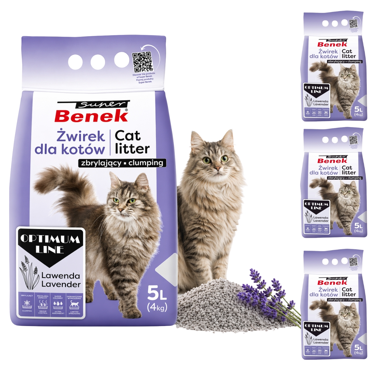 4x Super Benek Optimum Lawenda żwirek bentonitowy dla kota 5L