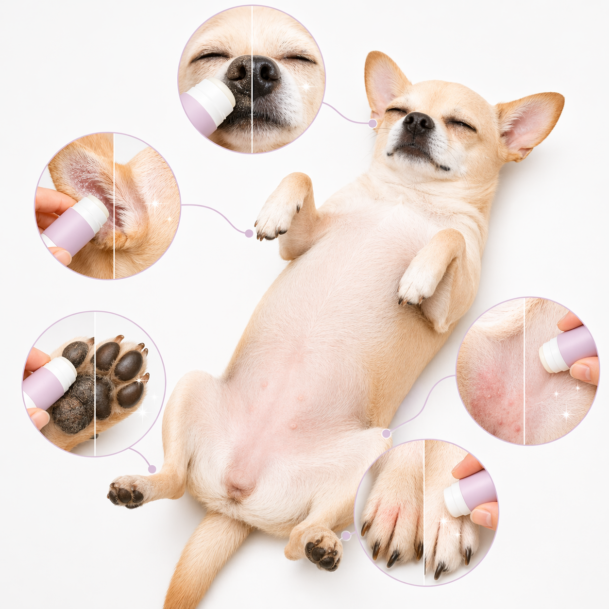 to wyjątkowy kosmetyk pielęgnacyjny dla psa, stworzony z myślą o delikatnej, wymagającej i narażonej na przesuszenie skórze. To skoncentrowana formuła oparta na 12 precyzyjnie dobranych składnikach aktywnych, bez zagęszczaczy, wypełniaczy i konserwantów. Serum pomaga intensywnie wygładzać, regenerować i odżywiać nosek, łapki, uszka oraz inne wrażliwe miejsca, przywracając im komfort, miękkość i naturalną ochronę.
