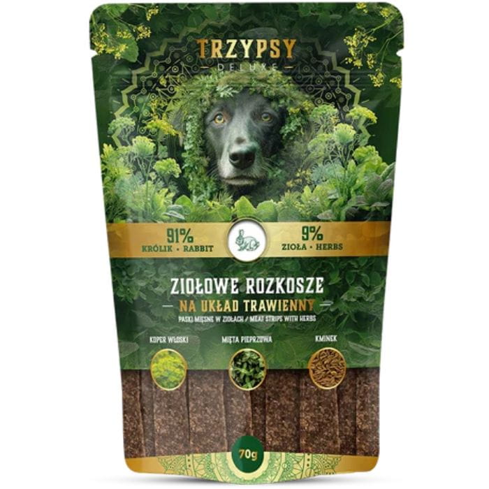 Trzy Psy Ziołowe rozkosze Paski z Królika na układ trawienny Przysmak 70g