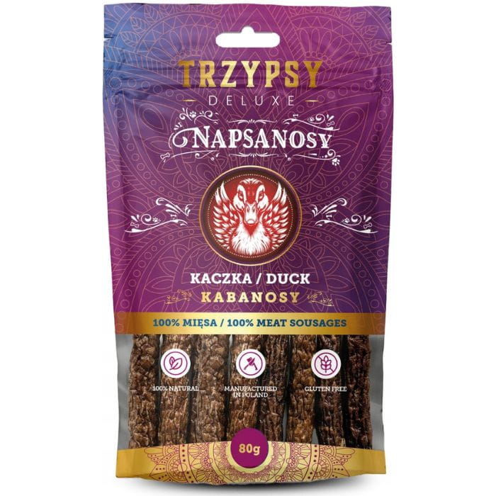 Trzypsy Napsanosy Przysmak dla psa Kabanosy z kaczki 80g Kaczka