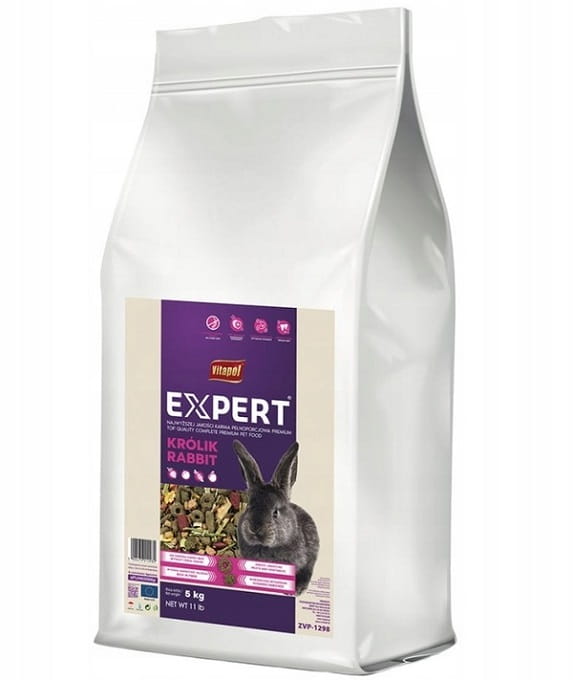 Expert w żywieniu królików to karma pełnoporcjowa w przewadze skomponowana ze składników poddanych procesowi ekstruzji przez co wszystkie wartościowe składniki żywieniowe są jeszcze bardziej dostępne i przyswajalne przez organizm. Karma ta uzupełniona jest owocami i warzywami poddanymi naturalnym procesom suszenia dla zapewnienia dostępnościo do naturalnych witamin, poprawiająca smak i chęć pobierania pokarmu przez zwierzęta. Receptura bez całych ziaren zbóż, a o wysokim udziale włókna surowego dla zapewnienia prawidłowej pracy jelit. Ekstrudowane składniki opracowane według zapotrzebowania żywieniowego roslinożernych królików. Wzbogacone odpowiednim kompleksem witamin dla zapewnienia zdrowego i witalnego organizmu. Udział tymotki i ziół zapewnia optymalne trawienie i sprawia, że karma zyskuje niepowtarzalny, zachęcający smak. Skłądniki z długimi włóknami wzmagają procesy przeżuwania i przyczyniają się do zachowania w zdrowym stanie siekaczy.