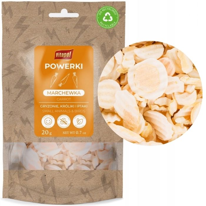 Vitapol Powerki Marchew liofilizowana dla gryzoni, królika i ptaków egzotycznych 20 g