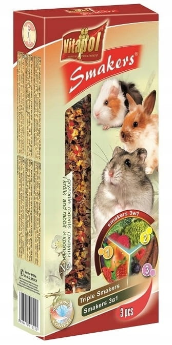 - odpowiednia twardość zapewnia, że oprócz wartości odżywczych Smakersy Vitapol dbają również o regularne ścieranie siekaczy u gryzoni i królików