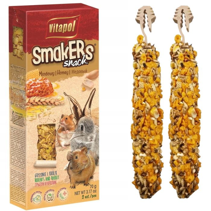 - ✔️ odpowiednia twardość zapewnia, że oprócz wartości odżywczych Smakersy Vitapol dbają również o regularne ścieranie siekaczy u gryzoni i królików